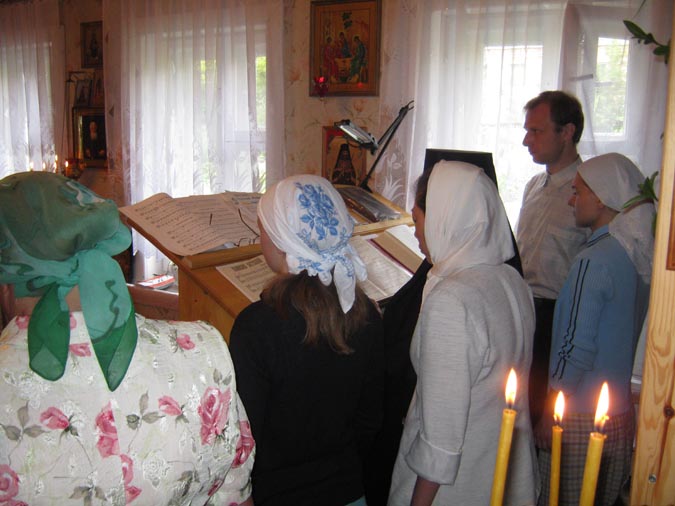 Ктитор храма монахиня Михаила (Соколенко) и две прихожанки на клиросе