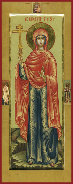 Святые мученицы Василисса и Анастасия жили в Риме и были просвещены светом христианской веры святыми апостолами Петром и Павлом. Они посвятили себя служению Господу. Когда император Нерон (54–68) преследовал христиан и предавал их на мучения и казни, святые Василисса и Анастасия безбоязненно подбирали тела мучеников и предавали их честному погребению. Об этом донесли Нерону. Святые Василисса и Анастасия были заключены в темницу. Их подвергали жестоким пыткам: били кнутом, строгали железными крючьями, опаляли огнем. Но святые мученицы оставались непреклонны и мужественно исповедовали свою веру во Христа Спасителя. По повелению Нерона они были усечены мечом († ок. 68).