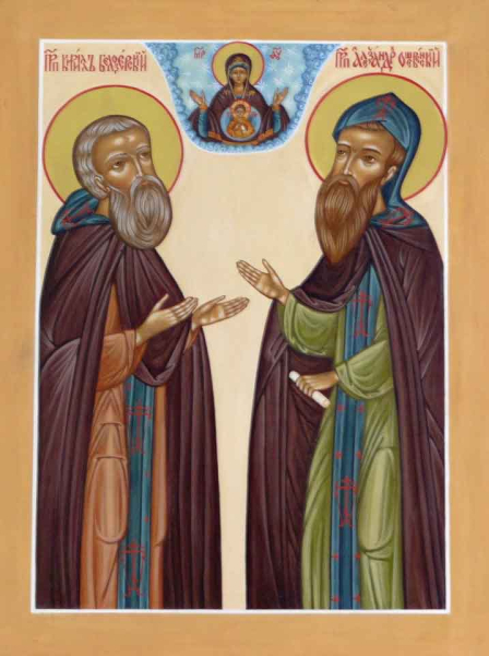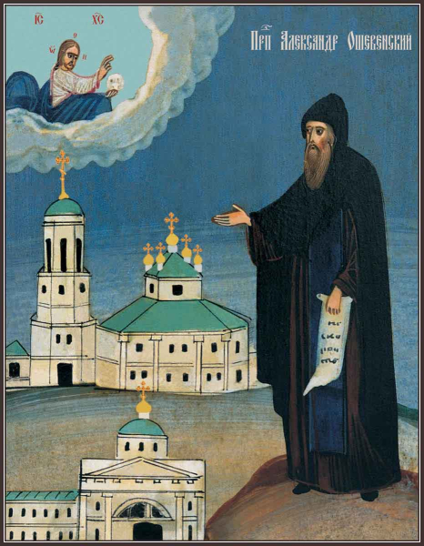 Преподобный Александр освятил избранное место иконами, поручил отцу наблюдать за строительством церкви, а сам отправился к архиепископу Новгородскому Ионе (1459–1470). Архиепископ Иона посвятил его в сан пресвитера и поставил игуменом обители. Боярыня Анастасия и ее сын Юрий готовы были отдать монастырю всю волость, но преподобный Александр принял грамоты лишь на необходимые земли. Построенный храм был освящен во имя святителя Николая. С твердостью и мужеством начал преподобный трудиться в созданной обители. Старец, который приехал вместе с ним из Кирилло-Белозерского монастыря, не выдержал трудной пустынной жизни и уехал обратно. Но мало-помалу собралась братия. Преподобный ввел строгий общежительный устав, который требовал полного молчания в храме и на трапезе, когда читались жития; в келлии иноки не должны были быть без дела, а во время исполнения послушания творить Иисусову молитву или читать псалмы. "Братия, – говорил преподобный игумен, – пусть не страшат нас труды и скорби пустыни. Вы знаете, что путем скорбей входят в Царствие Небесное. Пусть живет в вас взаимная любовь и смирение. Бог есть любовь, и Он любит смиренных".