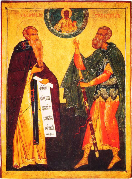 Здесь он безбоязненно исповедал Христа и, отвязав свой воинский пояс, бросил его, отвергая и сан воеводский, являя вместе с тем свою готовность идти на всякие мучения за имя Христово.
